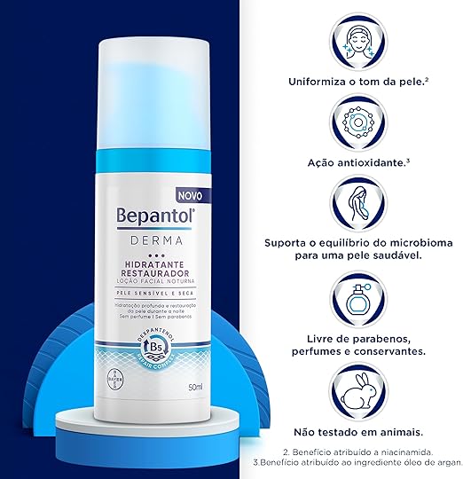 O Bepantol Derma Hidratante Facial Noturno é um produto de cuidado facial noturno que ajuda a hidratar, suavizar e melhorar a aparência da pele. O Creme Facial noturno foi desenvolvido com uma fórmula suave e eficaz que é perfeita para a pele sensível e seca. O creme de rosto Noturno contém o Dexpantenol Repair Complex, uma combinação de ingredientes ativos que atuam em sinergia para hidratar profundamente a pele e reparar sua barreira de proteção natural. A fórmula deste creme hidratante contém ingredientes suaves e não comedogênicos que ajudam a prevenir a obstrução dos poros. Este creme hidratante facial ajuda a manter a hidratação da pele durante a noite, quando o processo de regeneração natural da pele está em seu auge. Ele ajuda a reduzir a aparência de linhas finas, rugas e manchas escuras, deixando a pele com uma aparência mais jovem e revitalizada. Além disso, sua textura leve e não oleosa é rapidamente absorvida pela pele, deixando-a suave e macia ao toque. O creme noturno facial é um produto livre de corantes, fragrâncias e conservantes que podem irritar a pele. Combine com um hidratante labial para uma rotina de skincare completa.