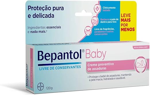 Kit com 3 Cremes Pomada de Assadura Proteção Delicada 120gr Cada– Bepantol Sempre pensando no bem-estar da mãe, do pai e, claro, dos bebês, a Bayer oferece Bepantol Baby, creme anti-assaduras que vai além dos cremes comuns. Seu uso destina-se a proteger a pele das assaduras, além de mantê-la resistente, macia e hidratada. Deve ser aplicado uma camada em toda a troca de fralda. Com sua fórmula única, livre de conservantes e agentes irritantes, forma uma barreira transparente que deixa a pele delicada do seu bebê respirar, mantendo-a sempre saudável. Possui Lanolina, que forma uma barreira protetora transparente no bumbum, e pró-vitamina B5, que penetra na pele do bebê deixando-a mais resistente contra assaduras. Além disso, Bepantol Baby é uma pomada livre de perfumes, corantes e parabenos que podem sensibilizar a pele delicada do bebê. Principais Características: – Idade Recomendada: 0m+ – Restaura a Pele de Dentro para Fora. – Mantém a Hidratação da Pele. – Proteção Pura e Delicada. – Clinicamente Testado. – Livre de Fragrâncias. – Livre de Agentes Irritantes. – Livre de Parabenos. – Livre de Conservantes. – Possui Vitamina B5. – Possui Lanolina. – Barreira Transparente. Especificações Técnicas: – Conteúdo da Embalagem: 3 Creme Pomada de Assadura Proteção Delicada 120gr cada. – Código do Fabricante: 84258547 – EAN: 7891106910248 – Marca: Bepantol * Imagens meramente ilustrativas, as cores e estampas podem variar de acordo com o lote do fabricante*